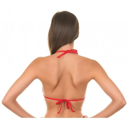 Dieses rote Bikini Oberteil verschönert Ihr Dekolleté mit seiner zeitlosen Form. Das Modell von Rio de Sol besteht aus zwei Dreiecken mit einem Tunnelzug und kann perfekt an jede Körperform angepasst werden. Es wird im Nacken und im Rücken gebunden. Durch sein Futter bleibt es sogar nach dem Baden undurchsichtig.