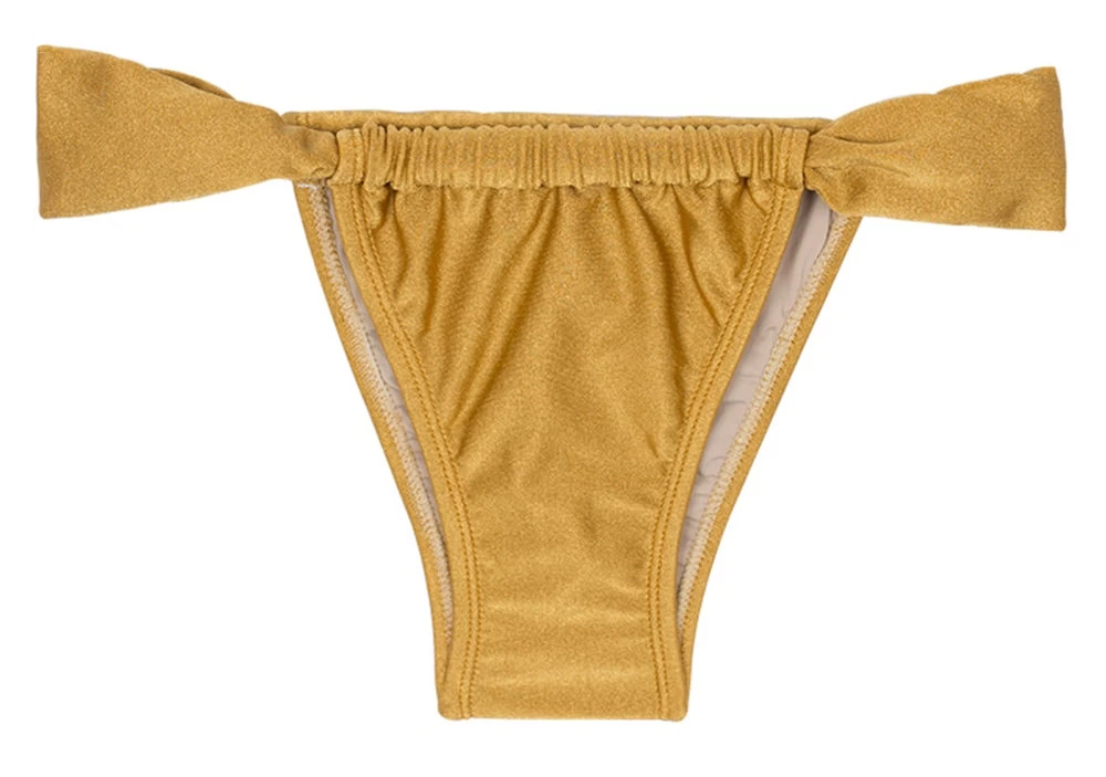 Ein brasilianischer Badetanga mit niedriger Taille von Rio de Sol. Dieser, aus der Kollektion 2018 stammende, Bikini-Tanga ist verstellbar. Bestimmen Sie wann und wo Sie sich bräunen wollen. Kombinieren können Sie dieses Bikini-Unterteil mit einem Top aus der Serie Gold.