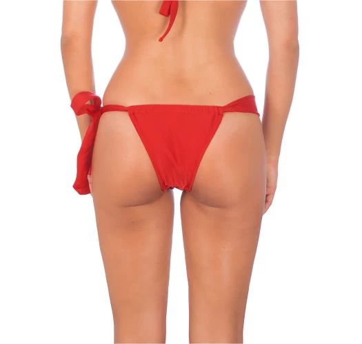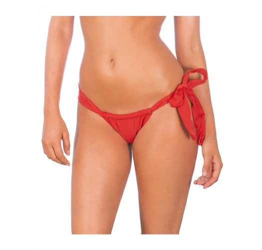 Verleihen Sie Ihrer Haut mehr Würze durch einem Touch Originalität mit diesem wundervollen grellroten Bikini-Unterteil. Sein knapper Schnitt wird Ihrer Figur schmeicheln. Dekoriert mit einer hübschen Schleife auf jeder Seite. Dieser verstellbarer Tanga ist einfach und feminin zugleich. Dieses RIO DE SOL Modell kann mit einem passenden Oberteil kombiniert werden.