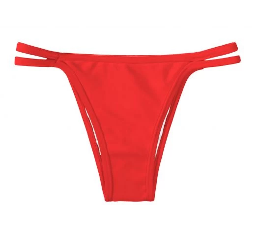 Dieser leuchtend rote Bikinislip hat ein wunderschönes modernes Design. Die zwei seitlich befestigten Bänder verleihen ihm eine sexy Note, der es nicht an Charme fehlt. Durch das integrierte Polyamidfutter bleibt er sogar nach dem Baden völlig undurchsichtig.