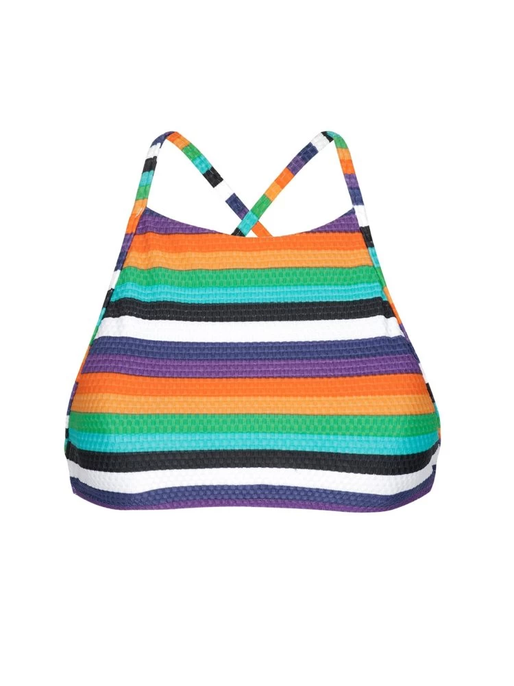 Buntgestreiftes Brasil Crop Top, ideal für sportliche Aktivitäten am Strand. Mit Kreuzträger für einen besseren Halt. Kombinieren Sie dieses Oberteil mit einem passenden Bikini-Unterteil.