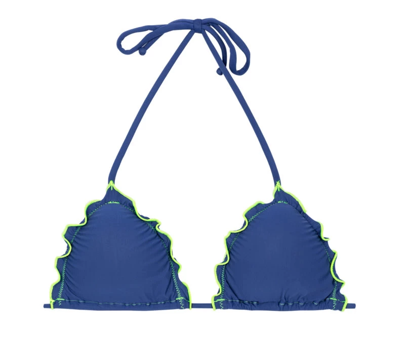 Ein Denim Triangel Oberteil, neonfarbene Konturen von Rio de Sol. Die Wattierung lässt sich entfernen, tragen Sie dieses Bikini-Top so wie Sie es am besten mögen. Die gerüschten Ränder mit neon-grünen Farben passen hervorragend zu zu dem blauen Bikini-Top. Das dazu passende Höschen finden Sie hier. Weitere denim-blaue Bikiniteile zum kombinieren finden Sie in unserer Denim-Kollektion von Rio de Sol.