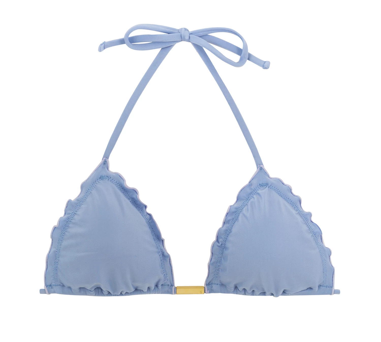 Denimblaues Triangel Bikinitop, gewellte Rand
