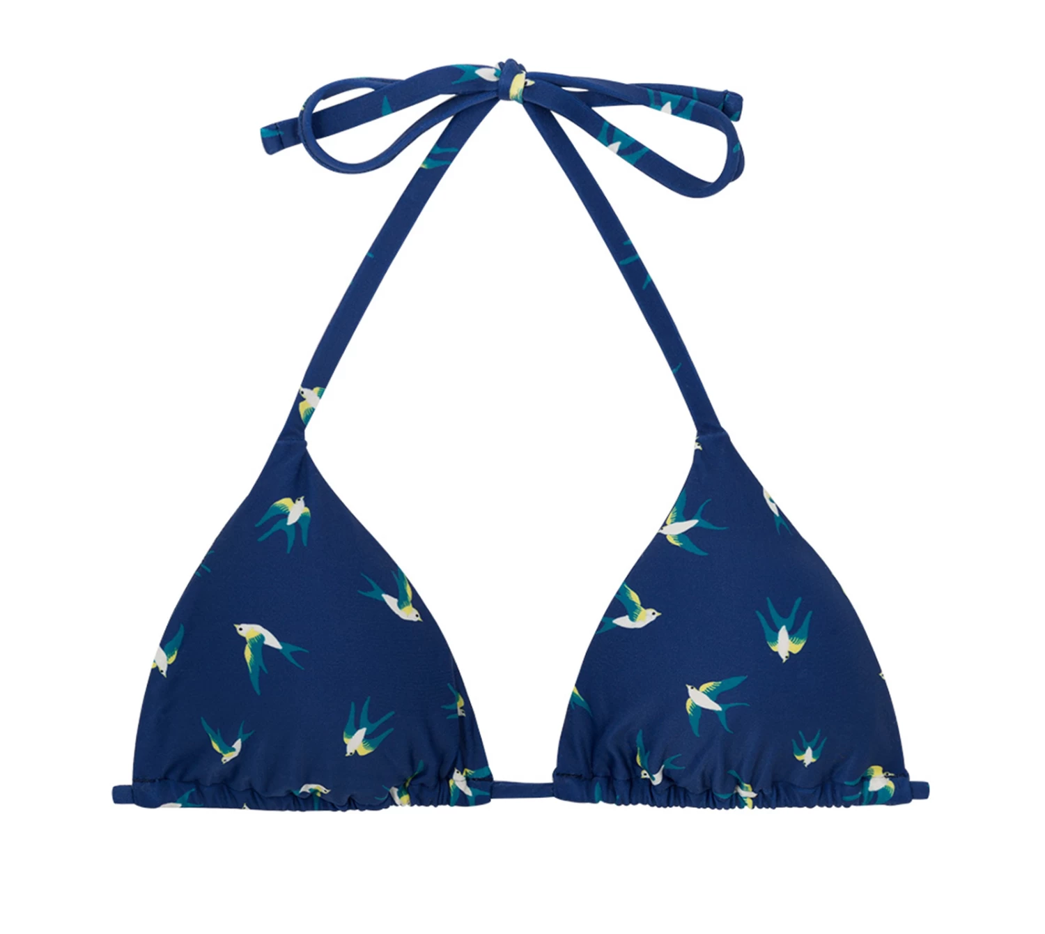 Dunkelblaues verstellbares Triangel Top, Vogelmotiv