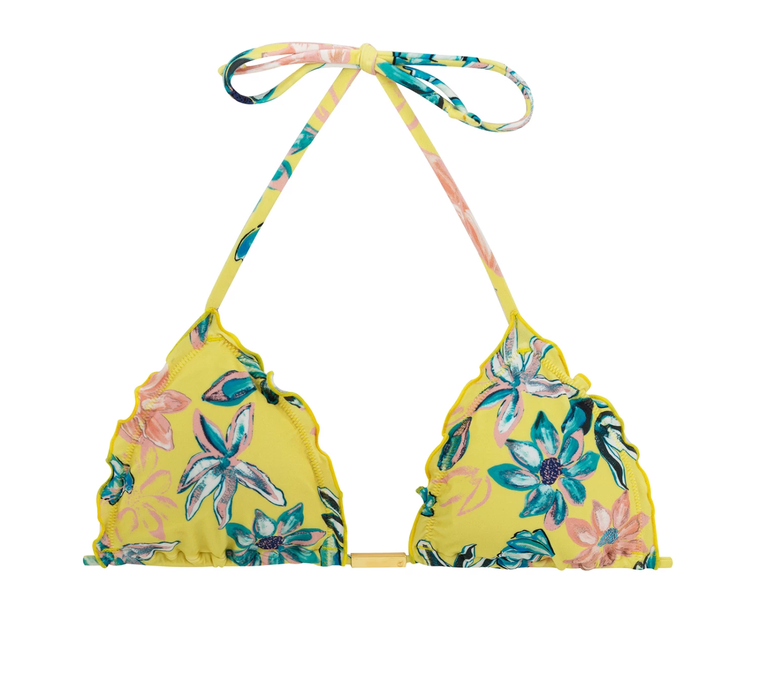 Bikinitop Frufru, gelbes Bikinioberteil, Bikini Blumen, Bikini Brasil Gelb, Brasilbikini gelb, Brazilbikini
