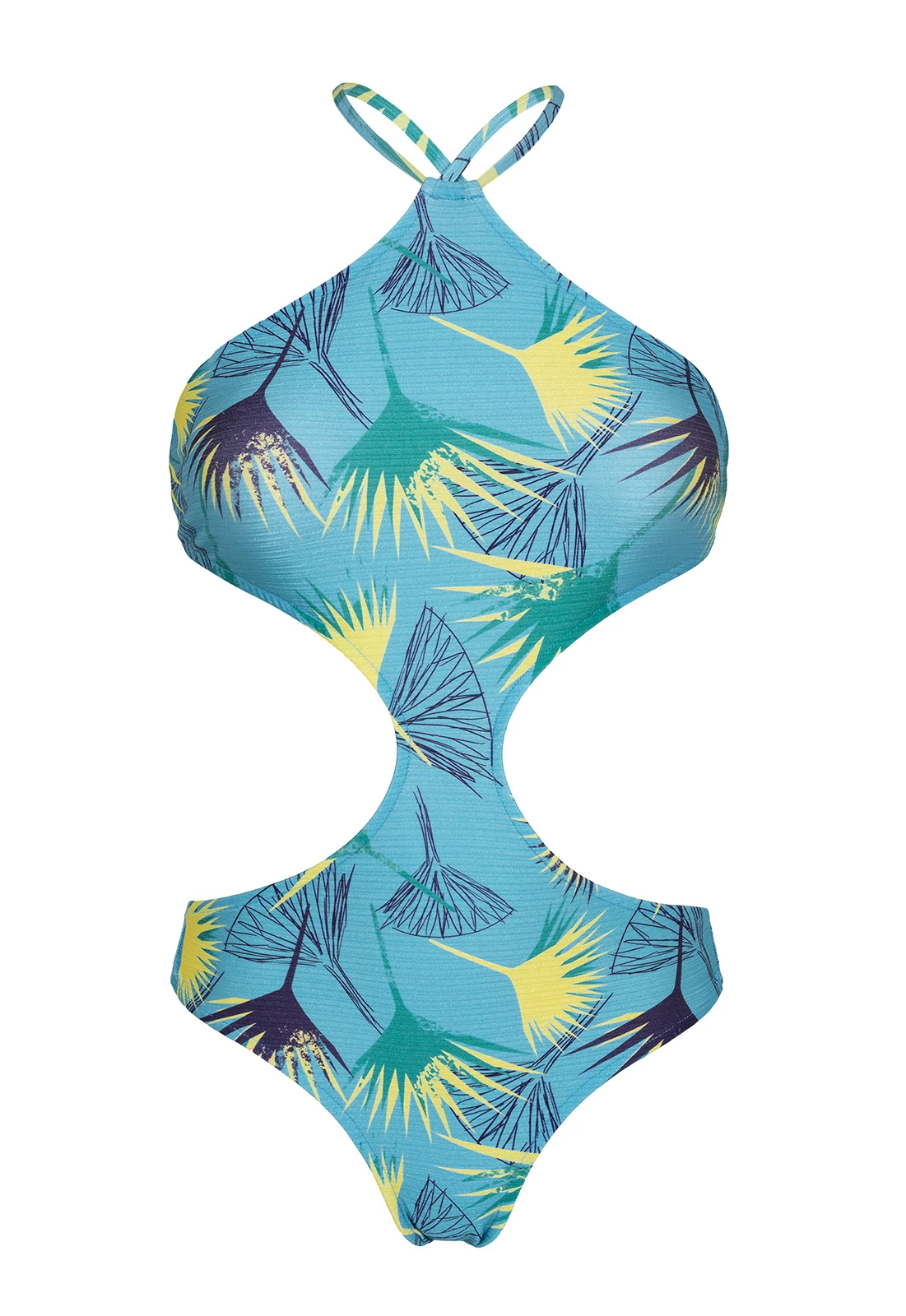 Ein hellblauer Monokini gemustert von Rio de Sol. Dieser hellblau-gemusterte Badeanzug ist ist unwattiert und bietet Ihrer Haut sehr viel Sonne. Das Hosenteil ist gemäßigt geschnitten und hat einen breiten Verbund. Möchten Sie vielleicht noch ein Bikini im gleichen Look? Farb- und mustergleiche Bikini-Tops und Höschen finden sie in unserer Bikiniserie Flower Geometric. Alle hier erhältlichen hellblauen Bikiniteile sind in verschiedenen Schnittmustern vorhanden und lassen sich zu einem echten Brasil-Bikini kreieren. Tragen sie an ihren Strand einen Brazil Bikini, der Sie einmalig erscheinen lässt.