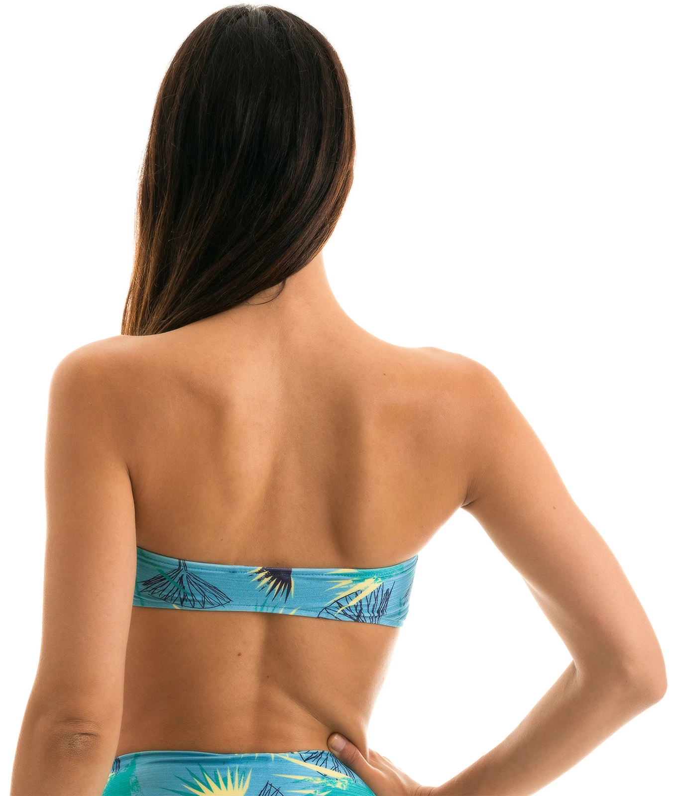 Ein hellblaues gemustertes Bandeau von Rio de Sol. Die Blumen Musterung liegt ganz im Trend der aktuellen brasilianischen Bademode. Mit abnehmbaren Trägern, so kann dieses Bikinioberteil auch als Bandeau getragen werden. Die enthaltene Wattierung lässt sich entfernen. Es wird in Brasilien hergestellt. Hierzu passende Bikinihöschen im gleichen Print finden sie in unserer Bikiniserie Flower Geometric. Mit diesen Bikiniteilen können sie sich ihren Brazil-Bikini selbst kreieren.