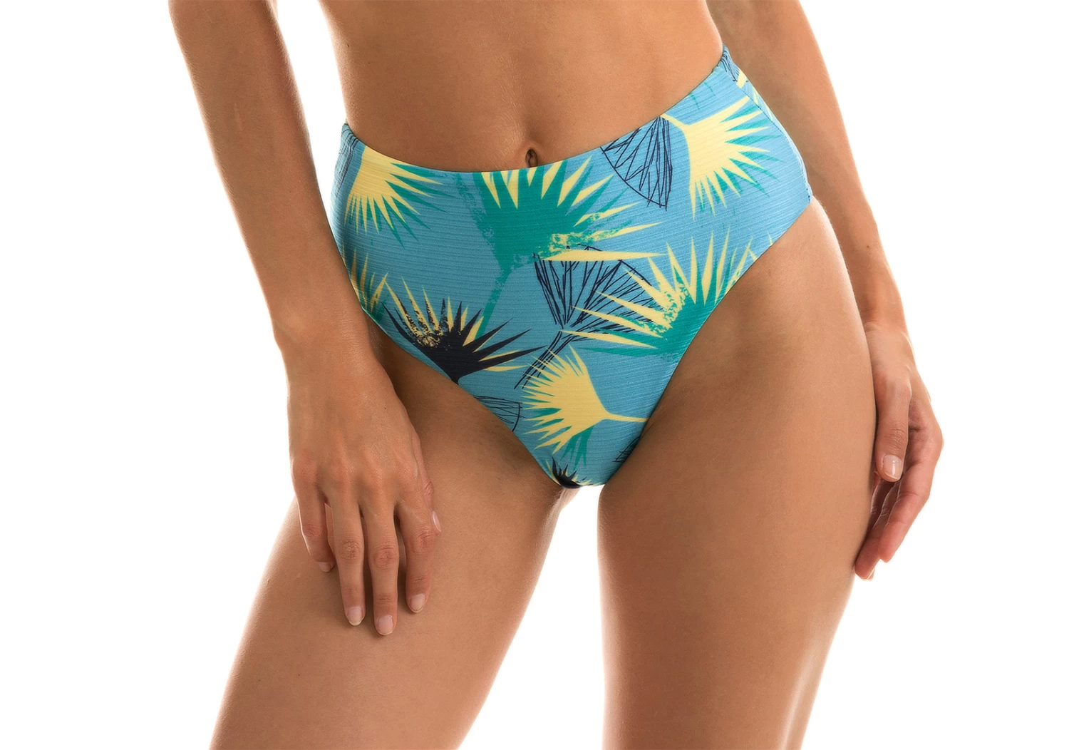 Eine hochtaillierte Bikinihose, hellblau gemustert von Rio de Sol. Diese hellblau gemusterte Bikinihose hat einen sehr hohen Verbund und Beinauschschnitt. Es wurde mit einer hellblauen Geoprint Musterung versehen. Der Schnitt ist typisch brasilianisch. Ein farb- und mustergleiches Bikini-Top finden sie in unserer Bikiniserie Flower Geometric. Alle hier erhältlichen blau gemusterten Bikiniteile sind in verschiedenen Schnittmustern vorhanden und lassen sich zu einem blauen Brasil Bikini kreieren. Tragen sie an ihren Strand einen Bikini der einmalig sein wird.