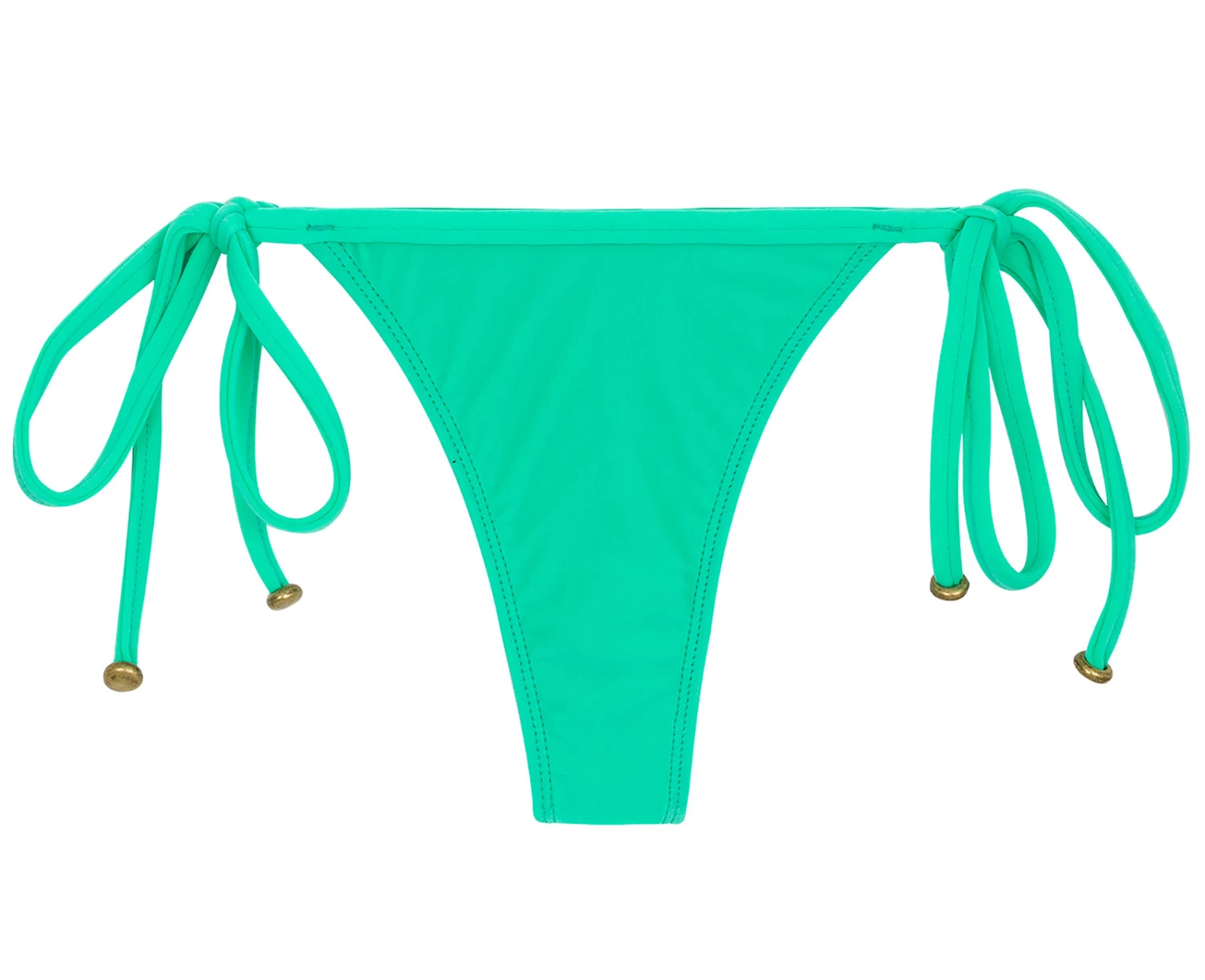Ein mintgrünes Stringhöschen von Rio de Sol. Dieser brasilianische String hat seitliche Schnüre zum verbinden. Diese sind an ihren Enden mit Accessoires ausgestattet. Nach dem 2018 Mintgrün der absolute Renner war wollte Rio de Sol auch in der aktuellen Kollektion nicht auf diesen Farbton verzichten. Viele weitere Bikiniteile in dem gleichen Farbton finden sie in unserer Strandkollektion Maresia. Hier können sie sich auf kreativer Art ihren eigenen mintgrünen Bikini zusammenstellen.