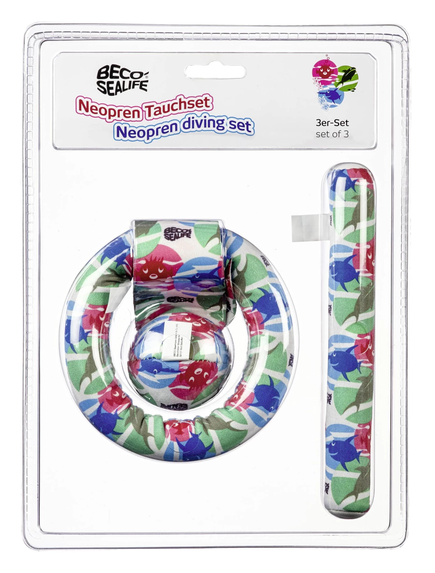 Zum Spielen und Tauchen lernen eignet sich dieses buntes Set hervorragend. Es besteht bestehend aus:
