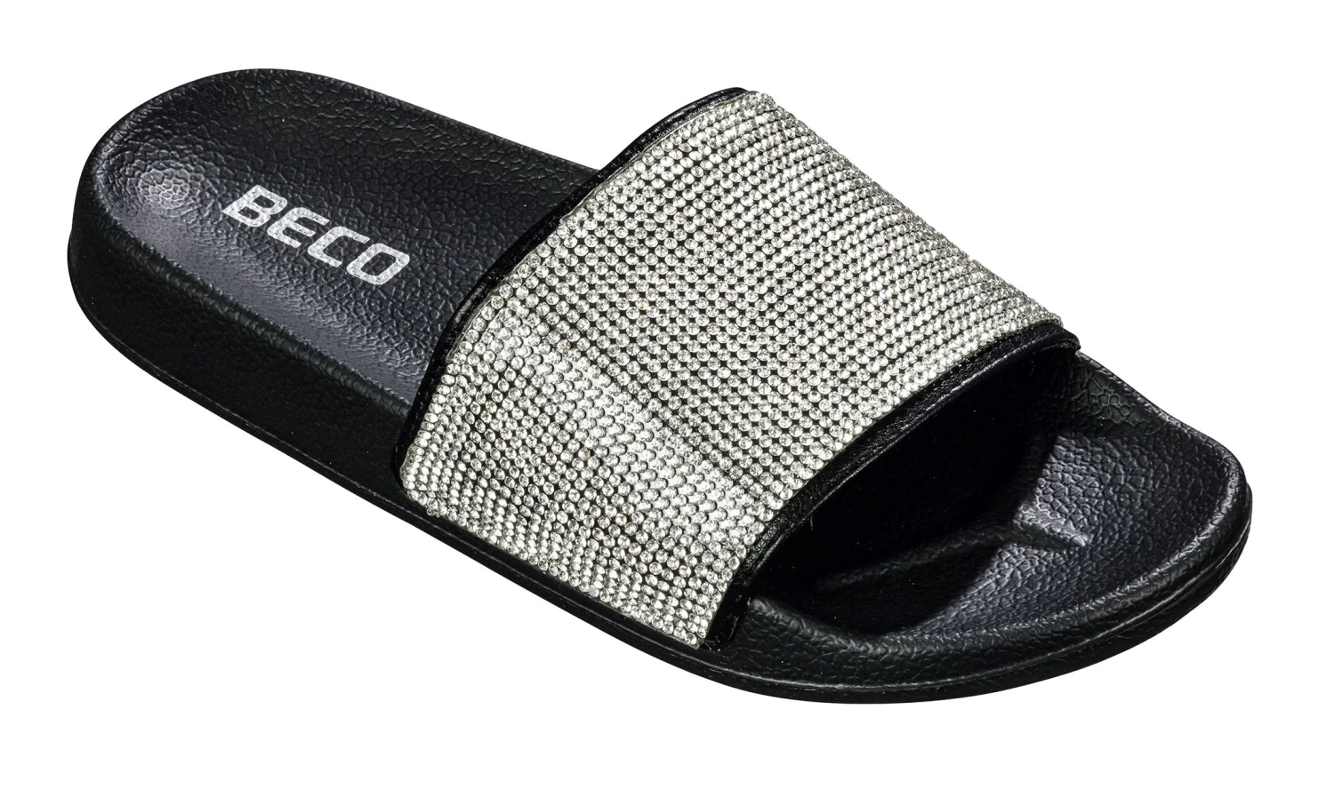 Tragen Sie ein bisschen Glamour am Fuß mit diesem Slipper mit Strassbandage. Das weiche Fußbett sorgt für den bequemen Tragekomfort.