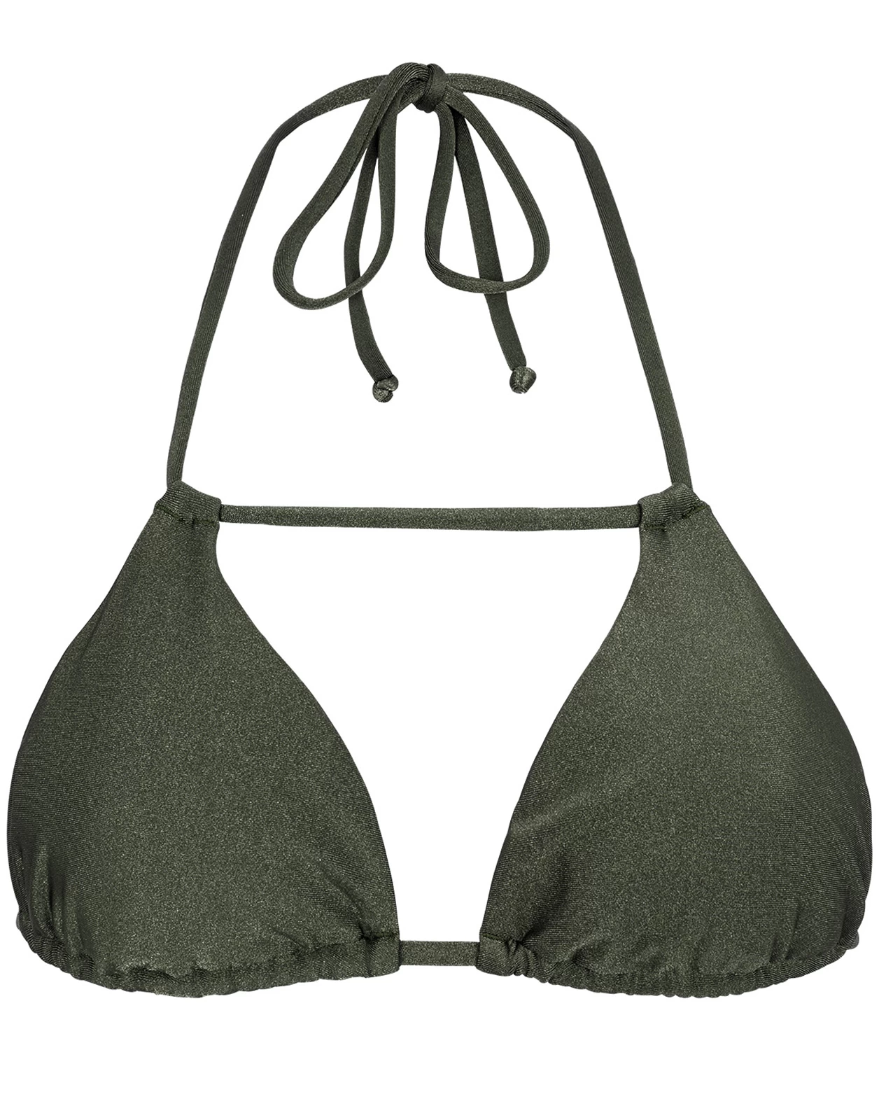 Triangel-Top mit Riemchen kaki glänzend von Rio de Sol. Dieses glänzende Triangel-Bikinitop ist kakifarben und hat zusätzliche Riemchen für einen besseren Halt. Die enthaltene Wattierung lässt sich entfernen. Das passende Bikinihöschen finden sie in der Bikini-Serie Croco, wo alle Teile den gleichen Farbton haben. So können Sie selbst bestimmen, wie ihr brasilianischer Bikini zusammengestellt werden soll.