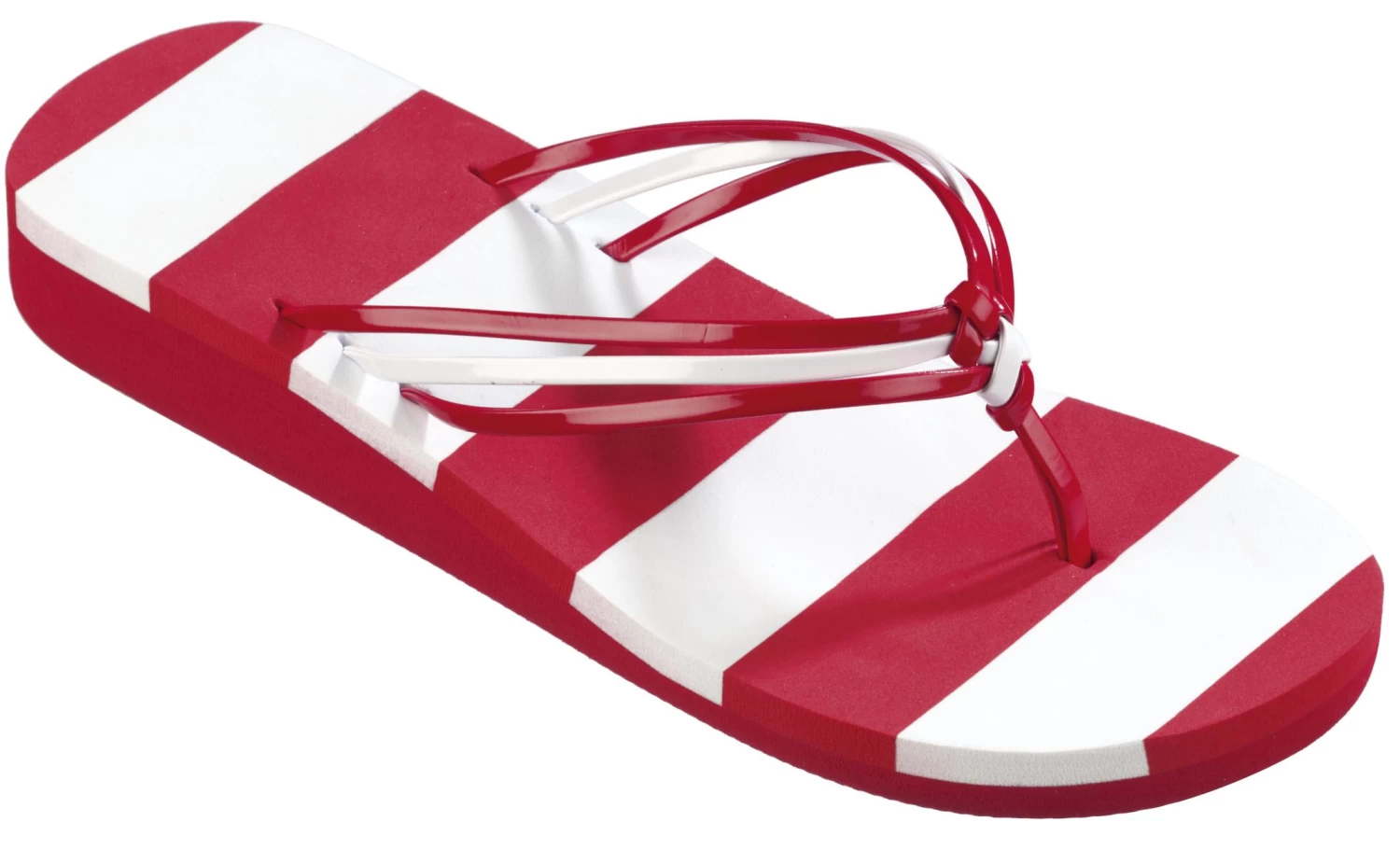 Damen V-Strap Slipper für Strand und Freizeit mit PU-Zehensteg. Die Sohle ist zur Ferse hin leicht erhöht.