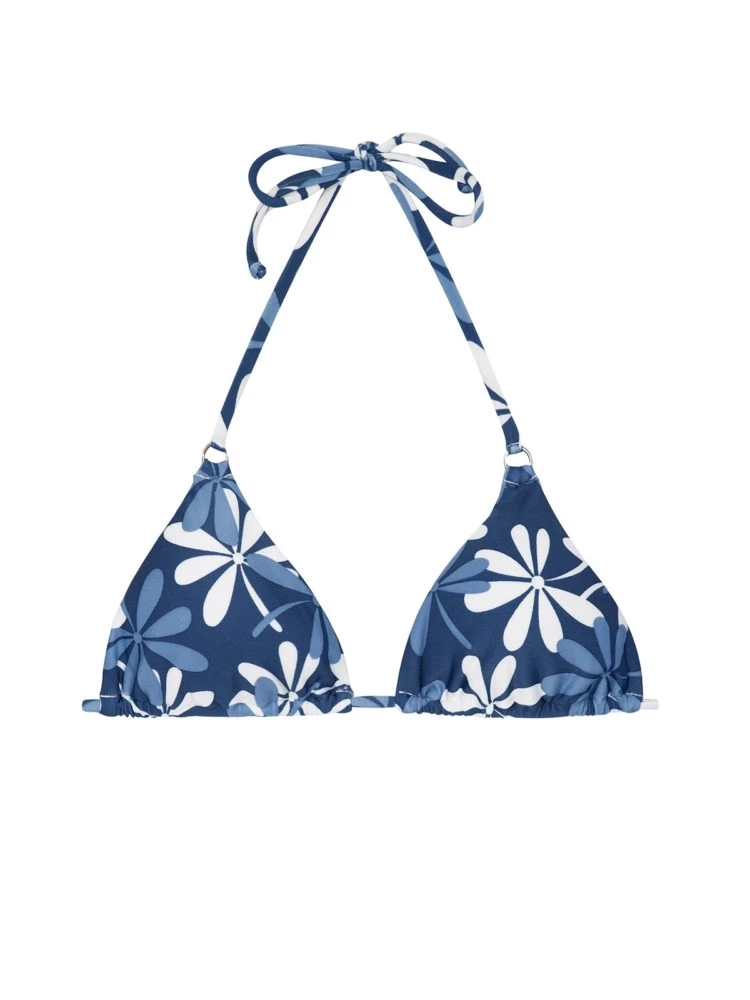 Wunderschönes weiß blau geblümtes Triangel Oberteil aus der Kollektion 2017 der Marke Rio de Sol. Kombinieren Sie dieses mit einem geblümten oder einfarbigen Bikini-Unterteil.