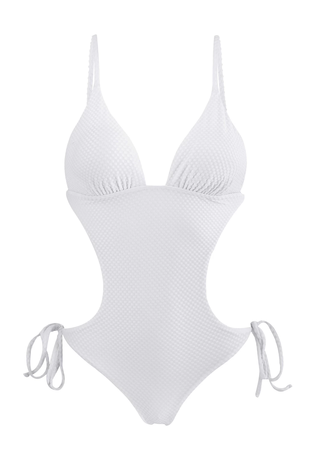 Weißer texturierter Scrunch Monokini